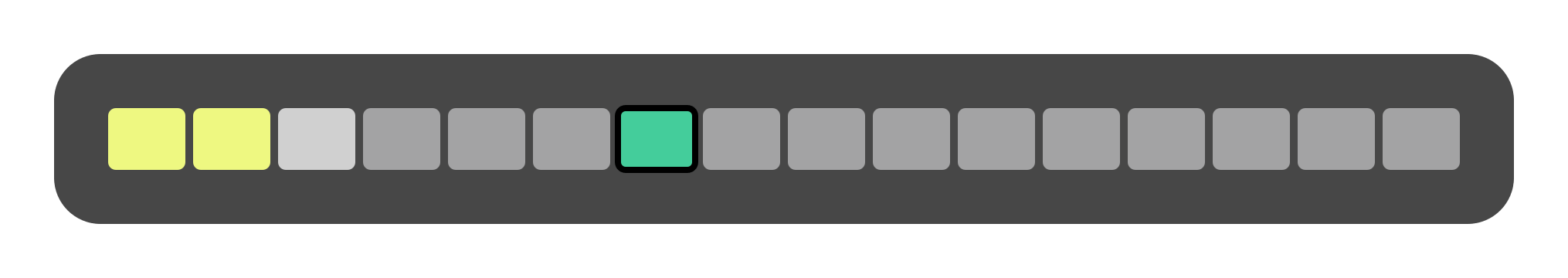 On the Grid Pads, envelopes for each track are arranged horizontally. Each row corresponds to a track, and each column represents the envelope slots stored for that track.