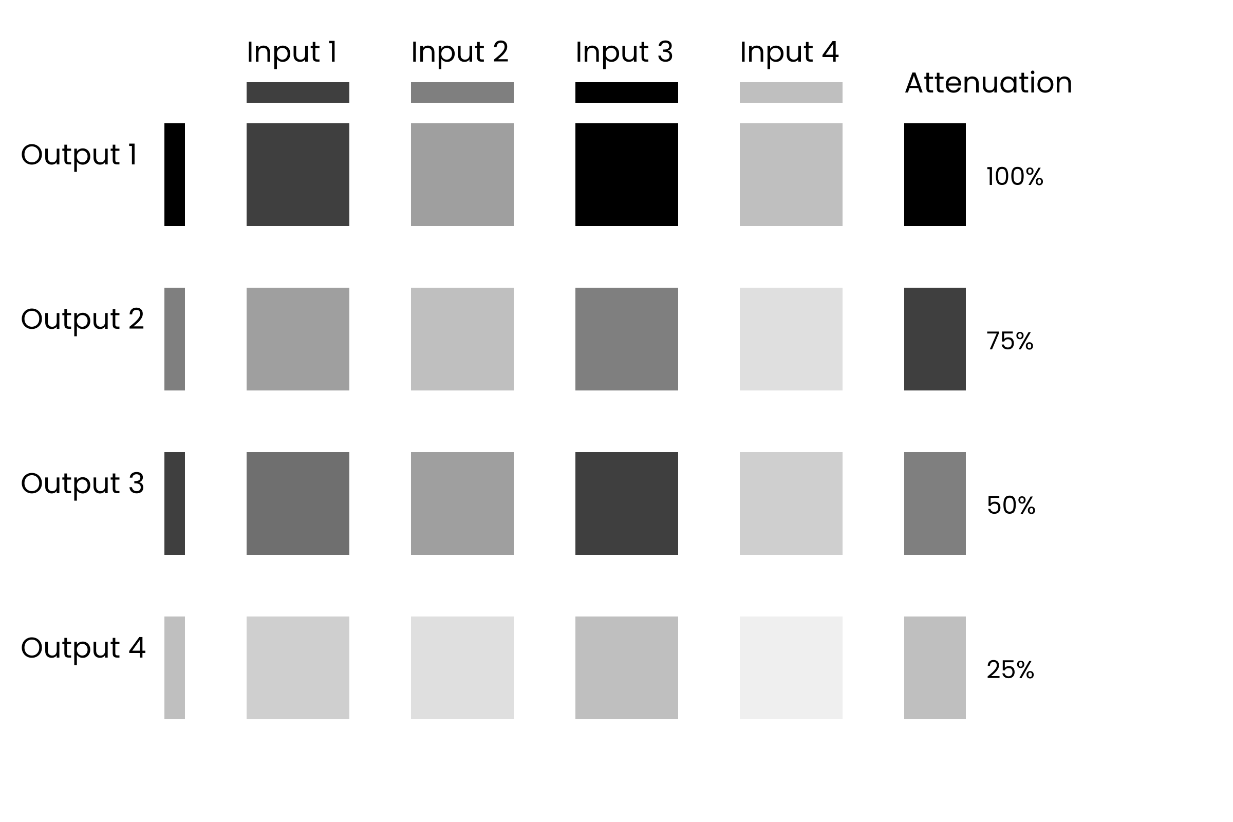 A matrix in audio refers to a flexible routing system that allows multiple inputs to be sent to multiple outputs. A mixer controls the blending, balance, and routing of these signals, determining how they combine before reaching their destination. A matrix mixer combines these functions, enabling signals to flow through complex audio paths. Matrix mixers vary in design, with differences in signal-path architecture, attenuation options, routing capacity, and switching mechanisms. Due to this variation, and the potential complexity of their interfaces, matrix mixers are often viewed as highly technical tools, which can make integration into music-centered workflows challenging.