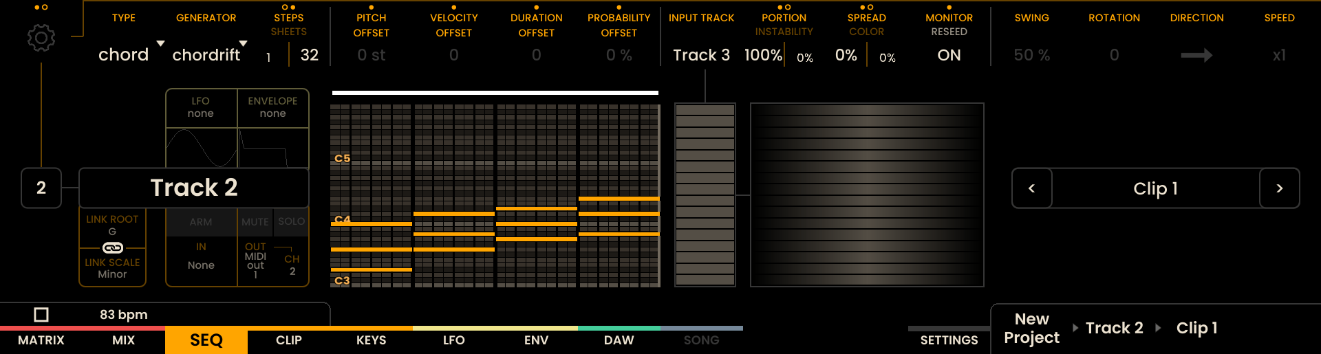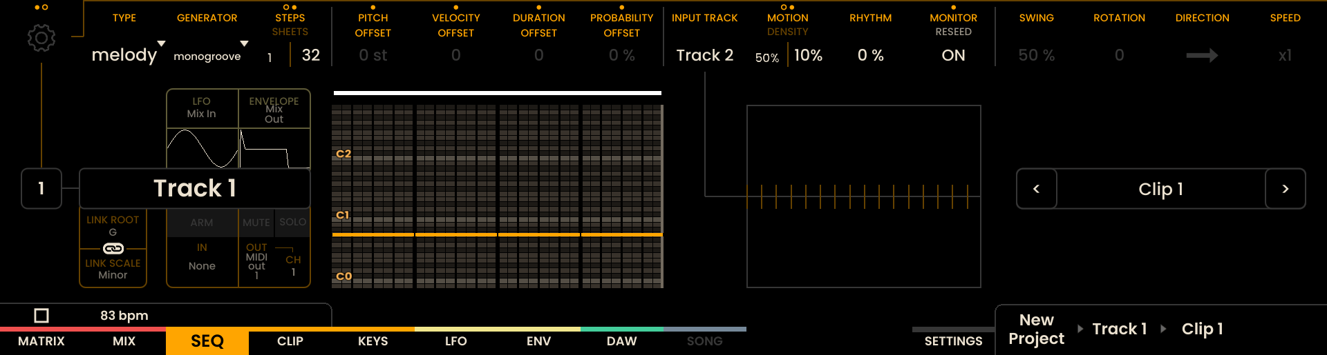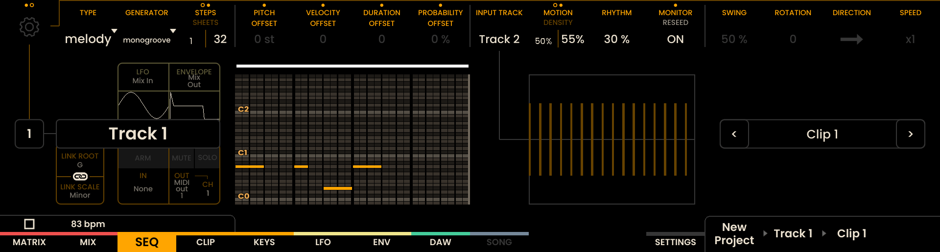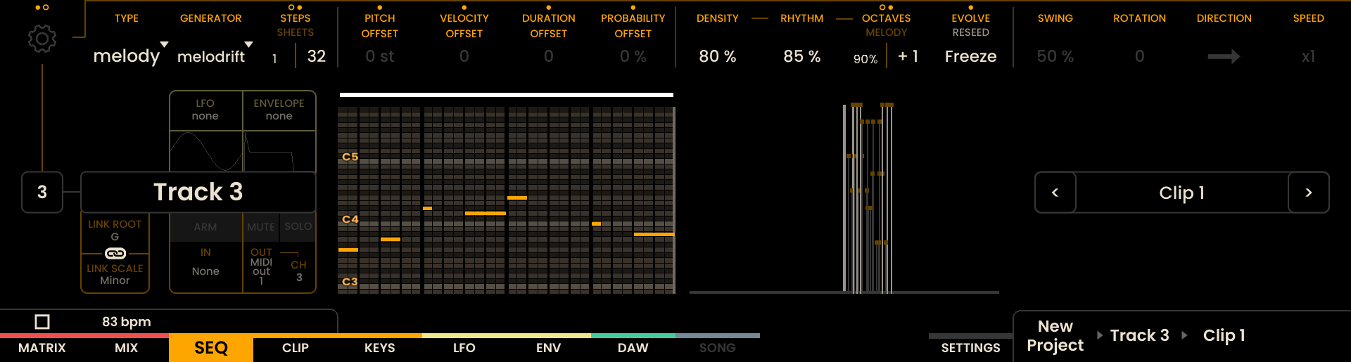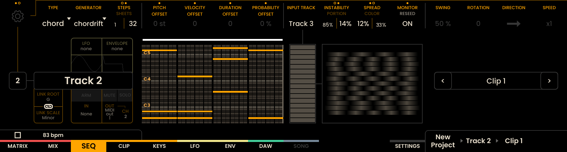 Modifiers: - PITCH OFFSET, VELOCITY OFFSET, DURATION OFFSET, PROBABILITY OFFSET