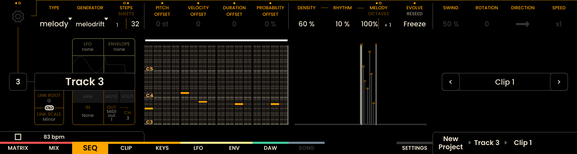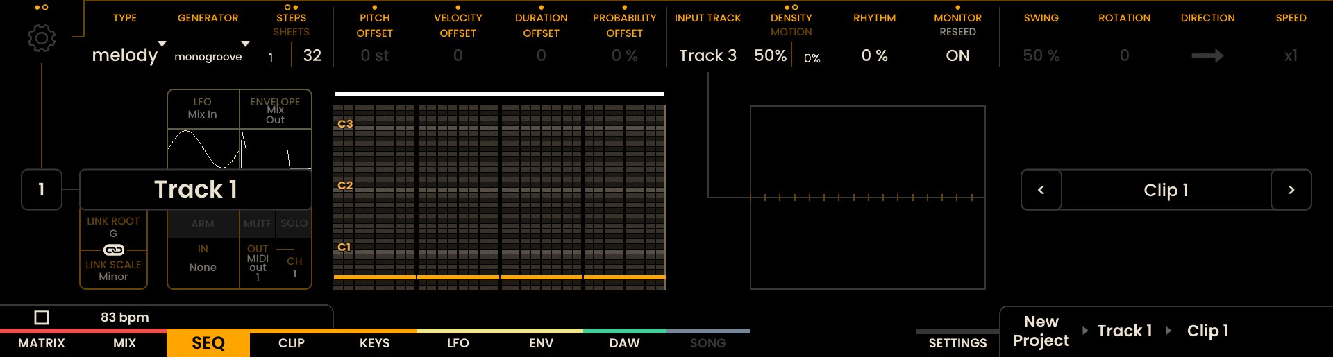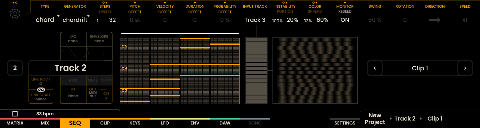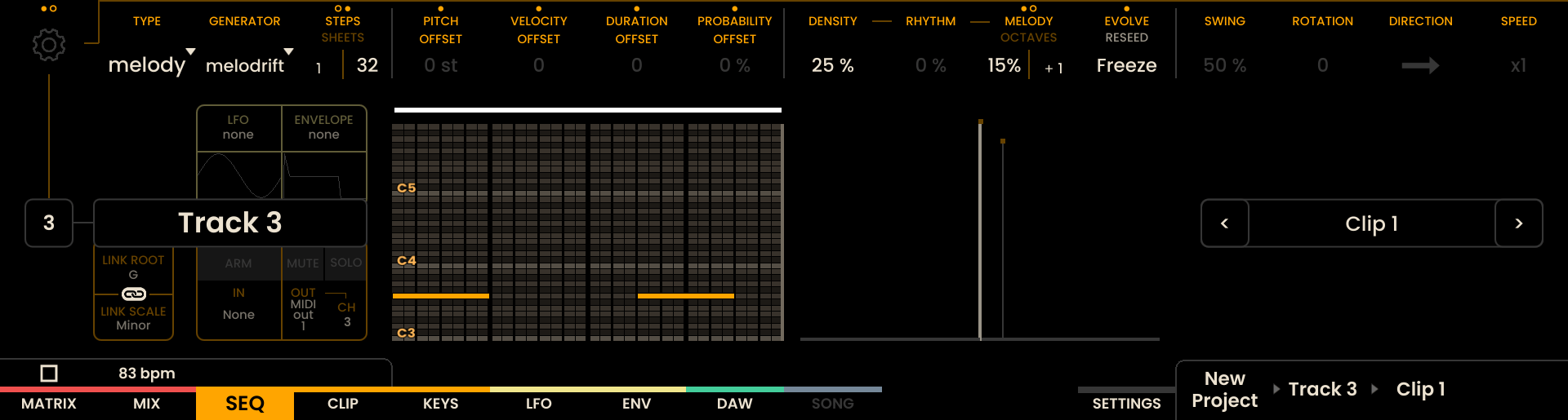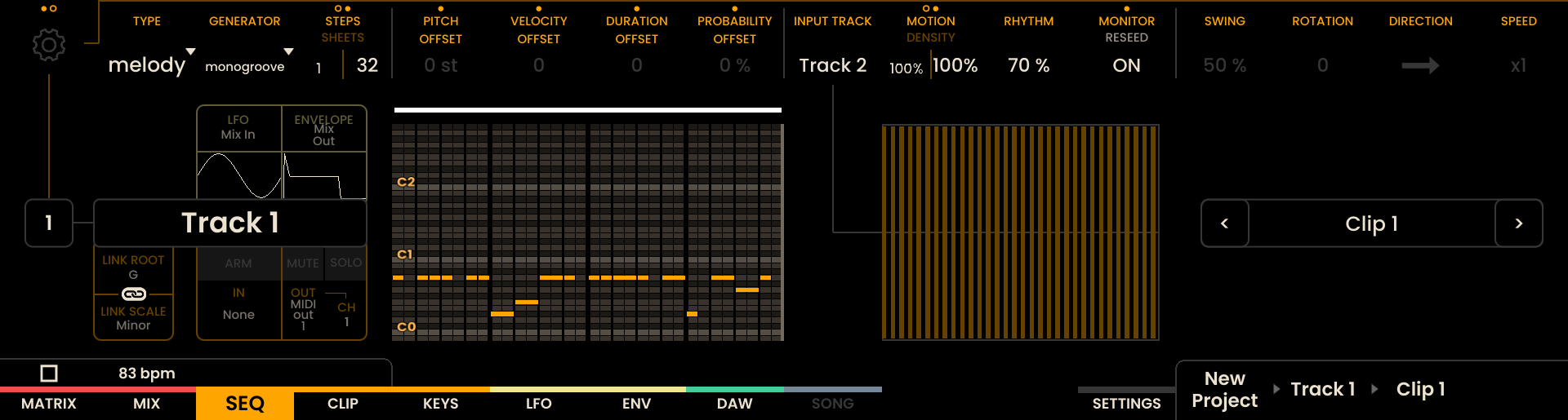 Modifiers: - PITCH OFFSET, VELOCITY OFFSET, DURATION OFFSET, PROBABILITY OFFSET